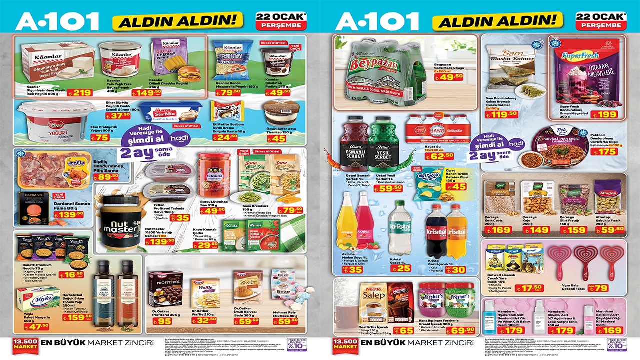A101’in 22 Ocak tarihinden itibaren satışa sunacağı ürünler ve fiyatları yayınlanan kataloğa göre şöyle: